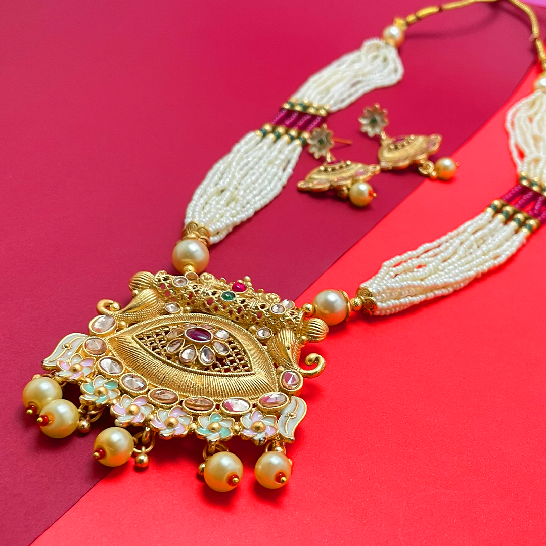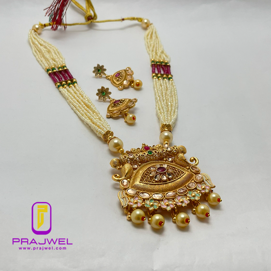Necklace Set : Long Necklace with Adjustable Dori, Matching Earring
