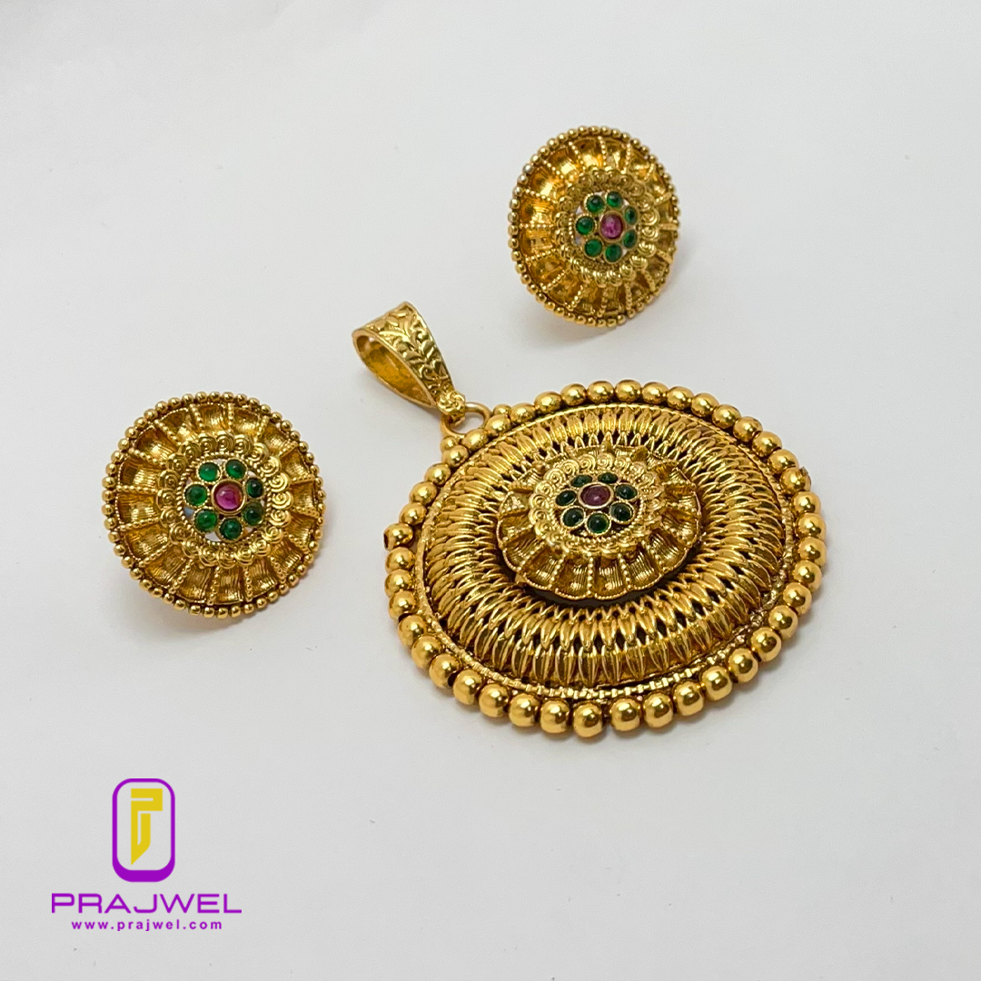 Add a classic touch to your look with this antique necklace set from Prajwel. This stunning piece features a beautiful combination of red and white stones set in brass, giving it a precious appearance. The necklace set complements any ethnic outfit and effortlessly adds a luxurious flair to your appearance!